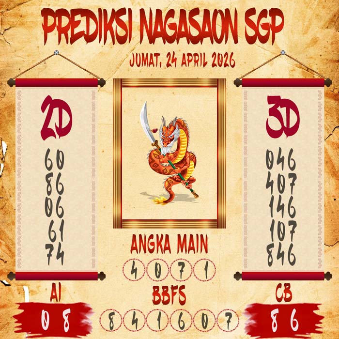 Prediksi Nagasaon Adalah Situs Prediksi Togel Paling Akurat yang menampilkan 2D, 3D, Angka Ikut (AI), Colok Bebas (CB), ANGKA MAIN ,BBFS. Kami Juga Memiliki Data Pengeluaran Terlengkap Saat ini. Bocoran Nagasaon Yang Kami Buat Berdasarkan keluaran resmi dari situsnya