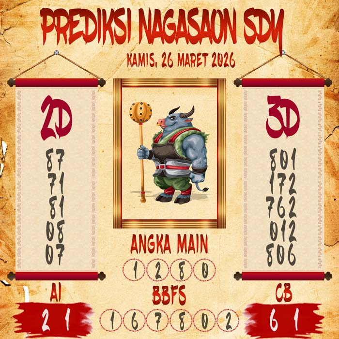 Untuk Mendapatkan bocoran bandar sydney hari ini ataupun live draw sd kitanya kita perlu menampilkan prediksi angka main sdy untuk menebak live draw sydney yang di keluarkan dari live togel sdy dalam data sydney live. Seperti Tampilan diatas, prediksi sydney hari ini di prediksi oleh nagasaon sydney untuk para pecinta prediksi sidney hari ini.