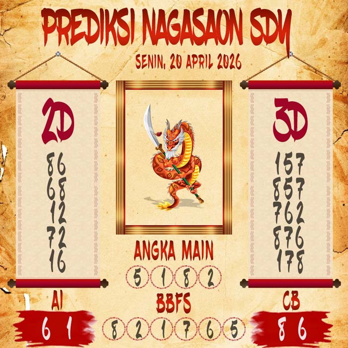 Untuk Mendapatkan bocoran bandar sydney hari ini ataupun live draw sd kitanya kita perlu menampilkan prediksi angka main sdy untuk menebak live draw sydney yang di keluarkan dari live togel sdy dalam data sydney live. Seperti Tampilan diatas, prediksi sydney hari ini di prediksi oleh nagasaon sydney untuk para pecinta prediksi sidney hari ini.