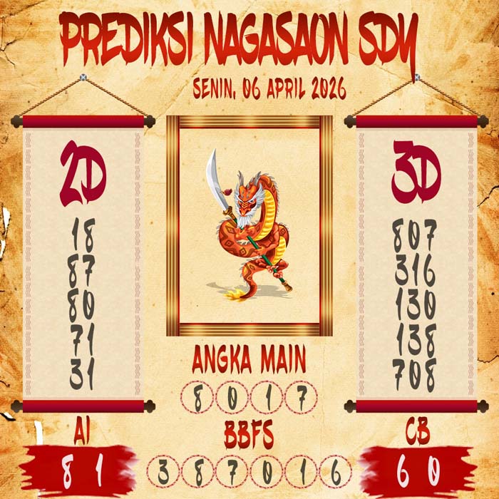 Untuk Mendapatkan bocoran bandar sydney hari ini ataupun live draw sd kitanya kita perlu menampilkan prediksi angka main sdy untuk menebak live draw sydney yang di keluarkan dari live togel sdy dalam data sydney live. Seperti Tampilan diatas, prediksi sydney hari ini di prediksi oleh nagasaon sydney untuk para pecinta prediksi sidney hari ini.